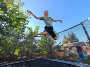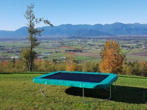 This rectangular trampoline, designed for smaller backyards, will nicely tuck into the corner of your yard while maintaining a large jumping surface of 116 sq/ft. The Max Air is designed for perfecting somersaults and board tricks. When it comes to performance, the name says it all. Our premium, quality built Max air will give you the height you need and a little extra landing space.
